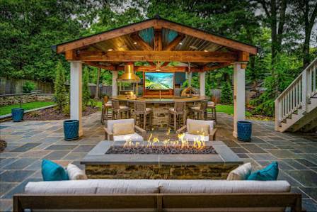 • Outdoor Kitchen Design & Construction: From grilling stations and pizza ovens to full-fledged outdoor kitchens with refrigerators, sinks, and ample countertop space, they expertly craft culinary havens.